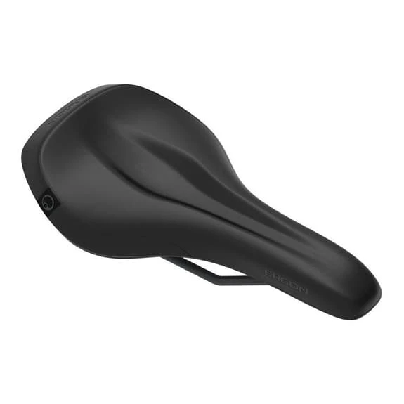 The Ergon E-Mountain Core Prime saddle is an ideal saddle for E-Bikes in MTB mode. It is a dynamic saddle with an ergonomic core, which prevents numbness in the soft tissue area, and reduces bone pressure in the saddle. It has more traction and uphill comfort. The floating TwinShell concept with Ergonomic Core supports the natural pelvic movements while pedaling, actively relieves the bones and reliably cushions the shocks caused by the driving surface.