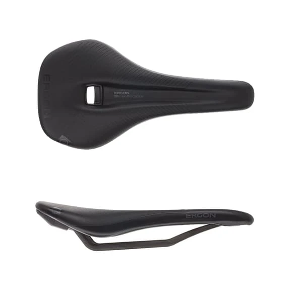 The Ergon SR Pro Carbon saddle is the super lightweight carbon version. It has a flat but perfectly padded contour, and the shape and relief are perfectly adapted to the female anatomy in a low, forward-sloping riding position typical of road cycling. The OrthoCell inlays in the seat area generate the best possible pressure distribution: The innovative OrthoCell material guarantees maximum restart forces and is also more durable and lighter than gel. The sliding sidewalls help reduce friction when pedaling.