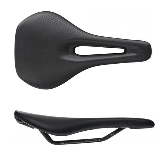 The women’s Ergon SR Pro saddle has OrthoCell inlays that provide optimal pressure distribution ensuring maximum reset forces and is also longer lasting and lighter than gel. Sliding edges help reduce friction when pedalling. The shape and relief are exactly matched to the female anatomy in the typical sitting position for the road.