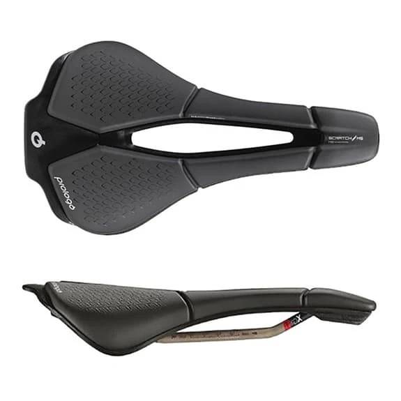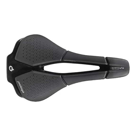 The Prologo Scratch M5 seat is the new line of bike seats that uses 4.0 technologies, innovative in terms of size, shape and ergonomics, are suitable for many uses and disciplines, including triathlon. Thanks to the new design, size and ergonomic ‘T SHAPE’, Scratch M5 is suitable for both men and women. The new MSS- Multi Sector System , designed in collaboration with the Politecnico di Milano, improves comfort and performance. The active foams, separated from each other, create 5 mapped zones that work individually, supporting the normal pedalling movement during both the pushing and pulling phases. The rounded shape of the Scratch M5 allows the pelvis to rotate naturally, creating stability and support for the lumbar areas; it also favours the distribution of pressure over a larger surface area. Despite the absence of a true perineal canal, the Scratch M5 has an open base capable of eliminating pressure peaks in the pelvic genital area. The closure of the prostate area also offers better protection against extreme weather conditions (rain or mud).