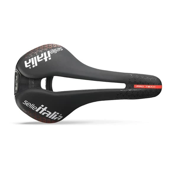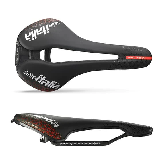 The Selle Italia Flite Boost Pro Team SuperF Kit Carbon saddle maintains the classic ‘flat’ style and support, while increasing comfort and performance for every rider thanks to its compact and aerodynamic shape, typical of short saddles. A saddle designed and conceived to continue a winning tradition.
