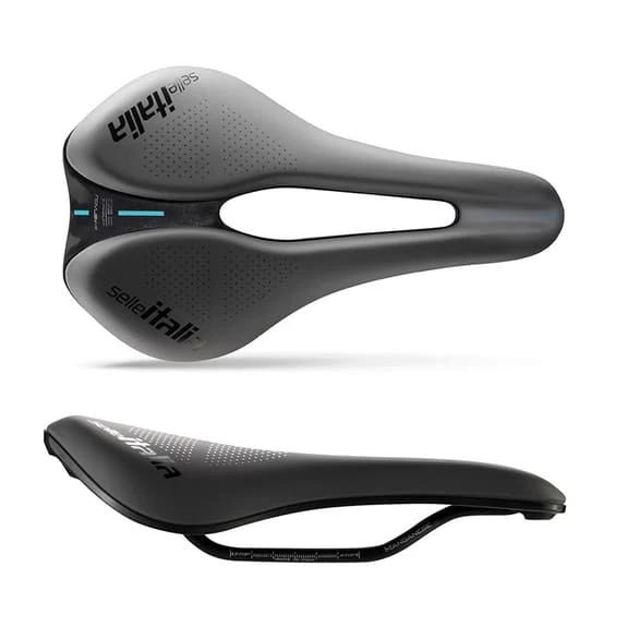 The number associated with the size (1, 2 or 3) identifies the presence or absence of the central cut (Flow technology): a special anatomical cut that allows the seat point to be ‘unloaded’, ensuring excellent comfort through greater flexibility in the central part of the saddle.