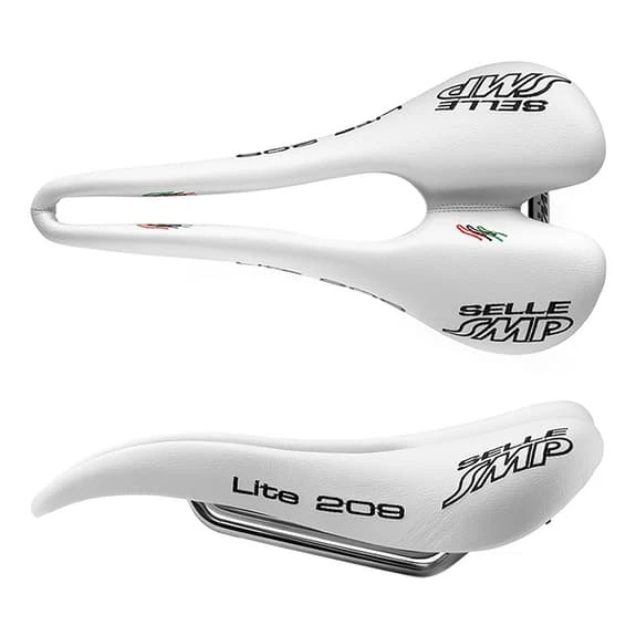 The Selle SMP LITE 209 seat uses the same structure as the Forma model, combined with comfortable padding. It is covered with real leather for the black versions and Lorica Microfiber for the coloured versions. It has ideal all-round characteristics and is particularly suitable for pelvises with average anatomical conformation. Selle SMP’s patented features, such as the completely open central channel, the original eagle-beak nose and the raised back give these models an excellent touch of aerodynamics. The Lite 209 is particularly suitable for all those who want maximum comfort in a medium-wide seat, and is particularly suitable for people with a medium-wide pelvis.